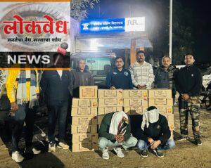 या कारवाईत देशी ‘भिंगरी’ दारूचे २७ बॉक्स (किंमत १,०३,६८० रु.), एक वनप्लस मोबाईल (किंमत १५,००० रु.), व टाटा सुमो वाहन (किंमत अंदाजे ५ लाख रु.) असा एकूण ६ लाख १८ हजार रुपयांचा मुद्देमाल जप्त करण्यात आला आहे.पोलीस हेडकॉन्स्टेबल रवी गीते यांच्या फिर्यादीवरून आरोपी अंकित विनोद जयस्वाल (२७, रा. ढाणकी) व वैभव मुंजाजी हिंगडे (रा. चातारी) यांना घटनास्थळावरून ताब्यात घेण्यात आले. दोघांविरुद्ध महाराष्ट्र दारूबंदी कायद्यांतर्गत कलम ६५ (ई)(अ) नुसार गुन्हा दाखल करण्यात आला आहे.